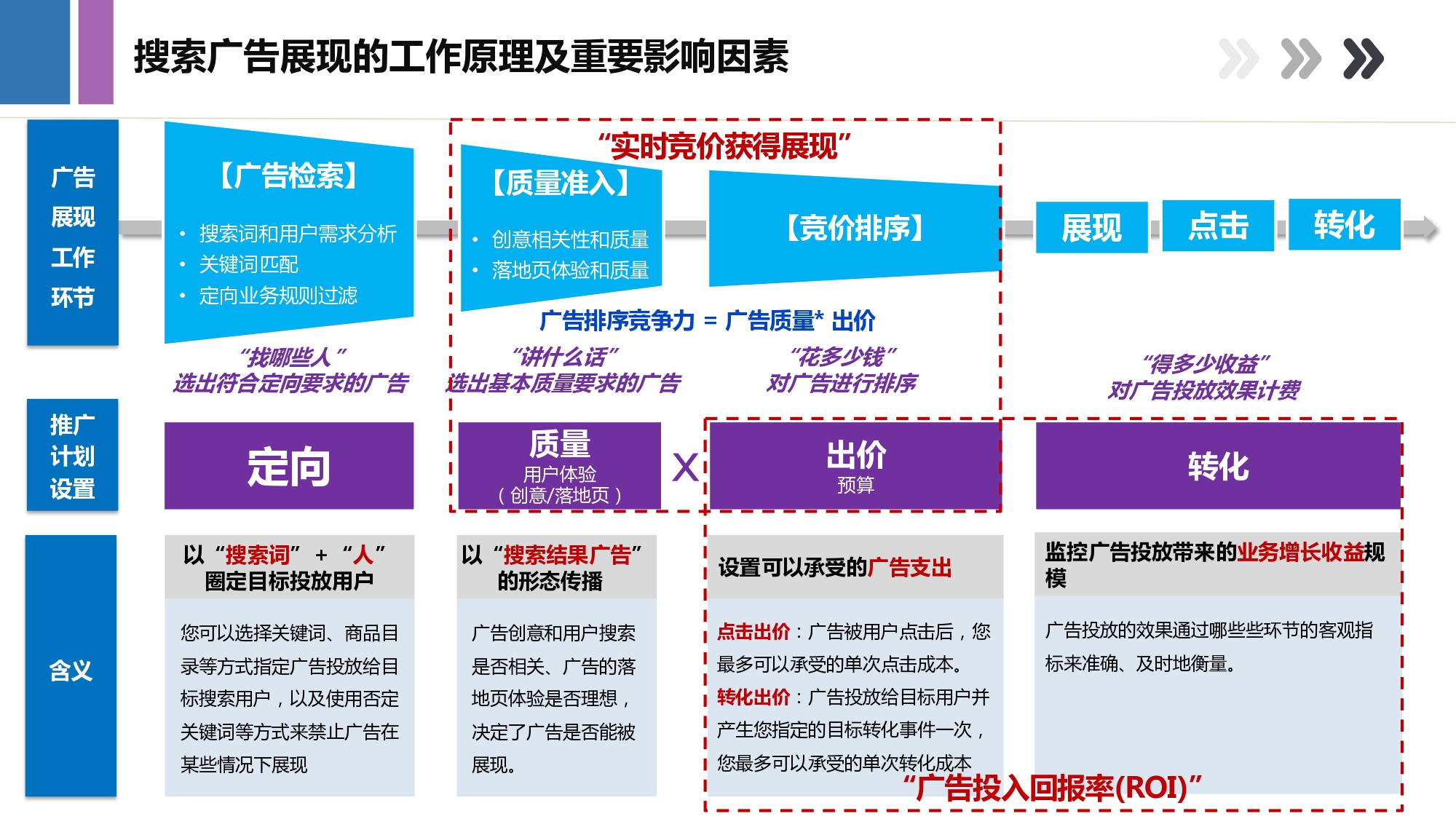 搜索推廣基于百度搜索引擎,用戶搜索關鍵詞,在百度搜索結果的顯著位置展示企業廣告信息,并幫助企業把用戶有效轉化為客戶的一種營銷方式。
