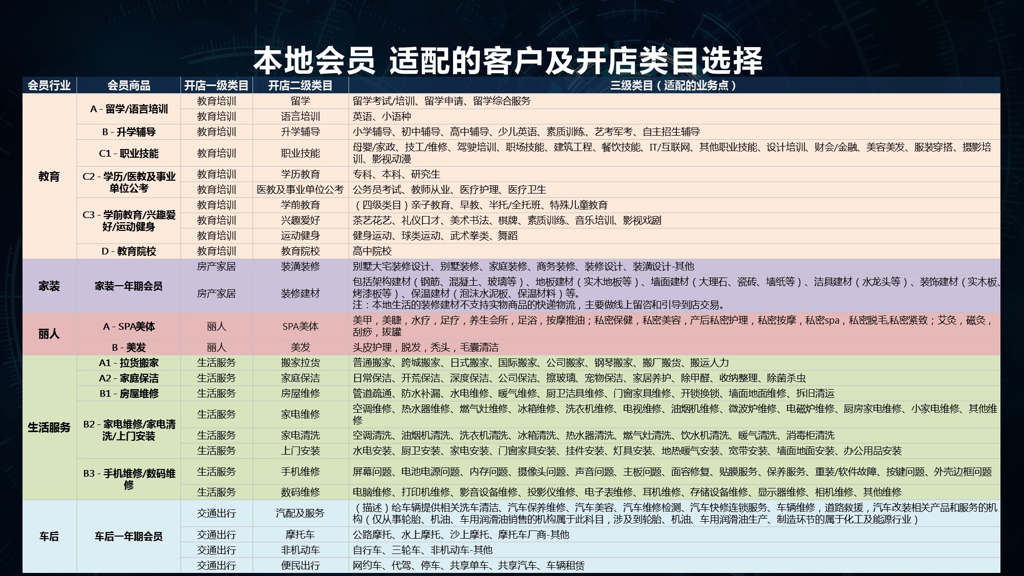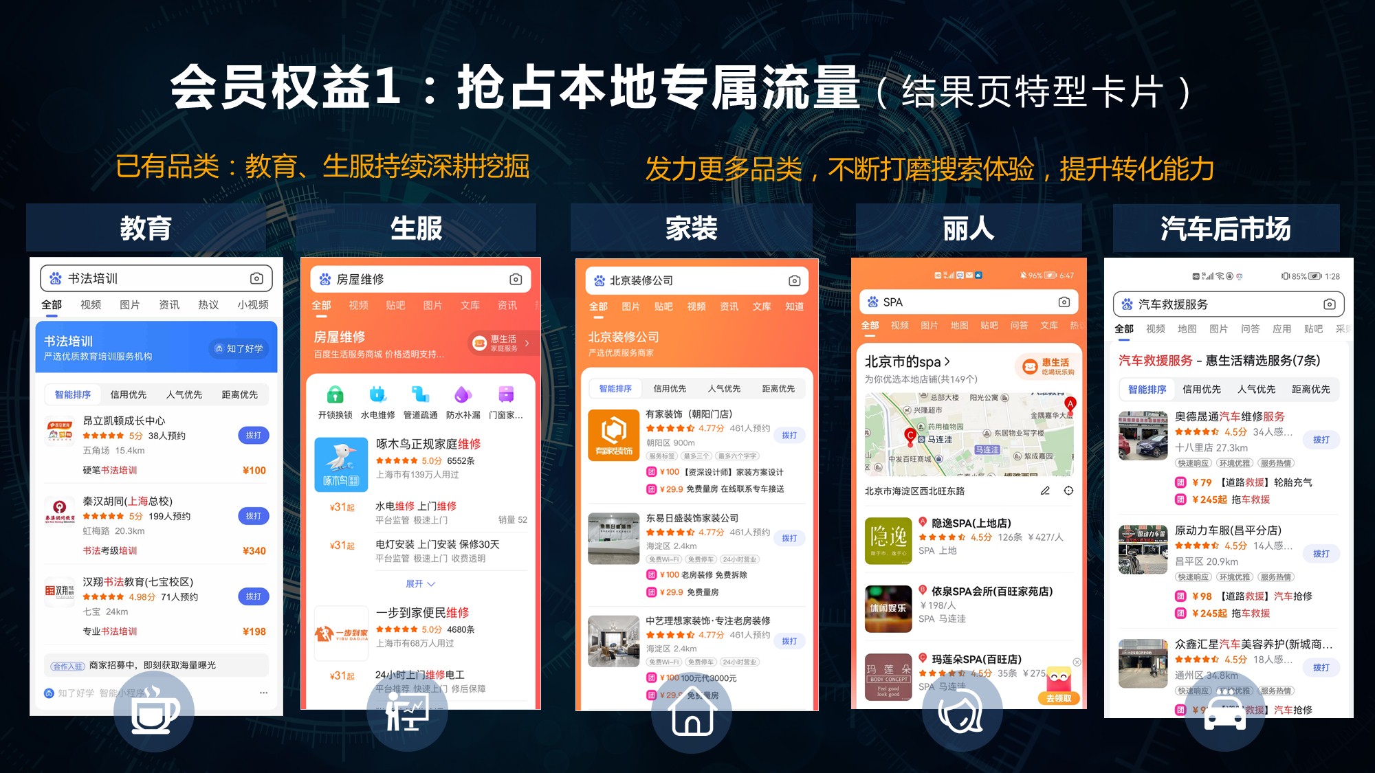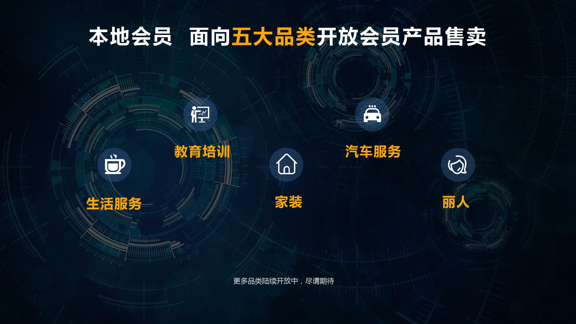 本地會員是面對中小商家的普惠型獲客解決方案,用海量專屬流量扶持本地商家成長,面向五大品類開放會員產品售賣,分別為:生活服務、教育培訓、房產家居、汽車服務和麗人。